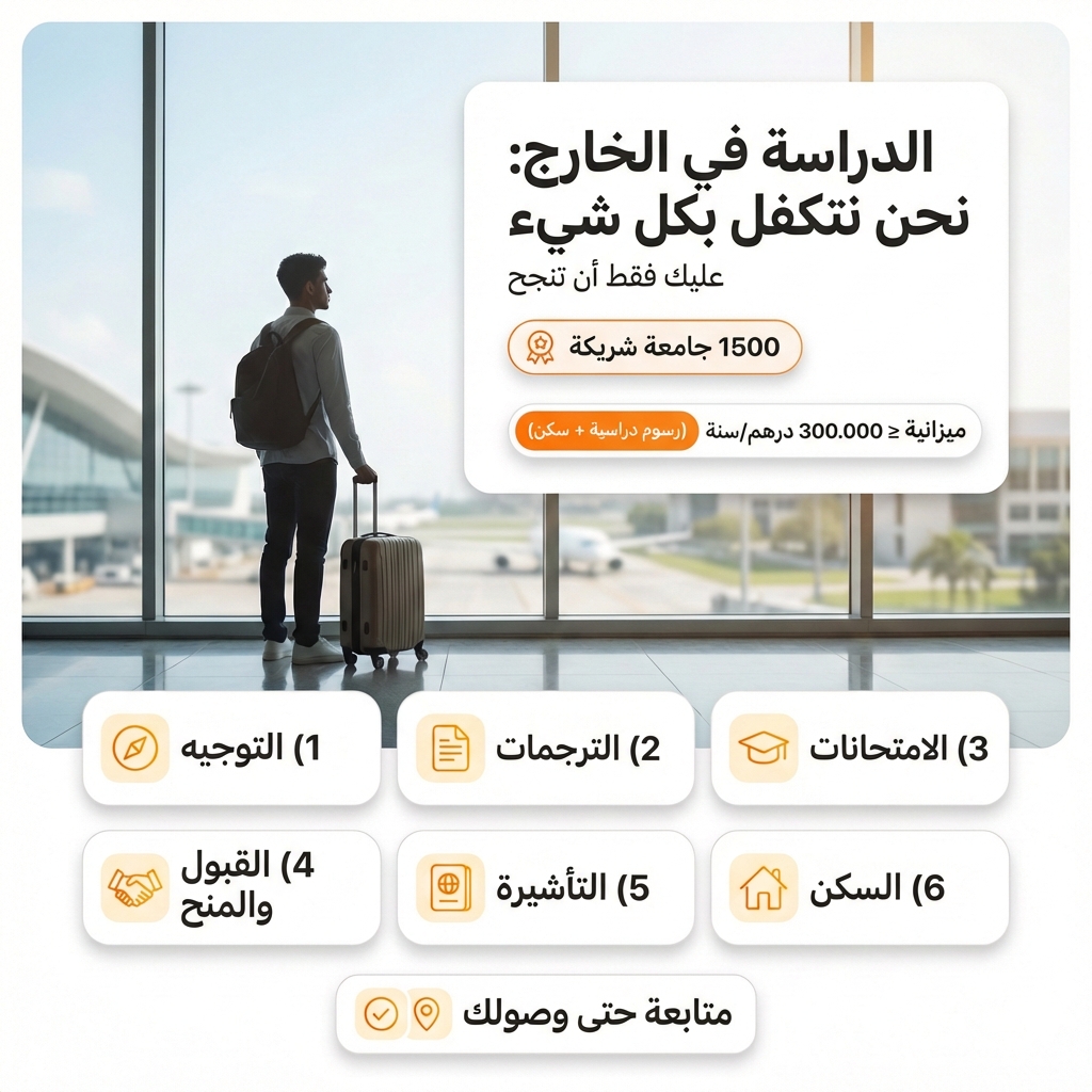 (الدراسة + السكن الجامعي) Broadway كتواكبك عبر شبكة أكثر من 1500 جامعة شريكة: ✔️ التوجيه الأكاديمي ✔️ ترجمة الوثائق ✔️ IELTS / TOEFL / SAT / GMAT ✔️ القبولات والمنح ✔️ الفيزا ✔️ السكن ومتابعة حتى توصل لوجهتك.